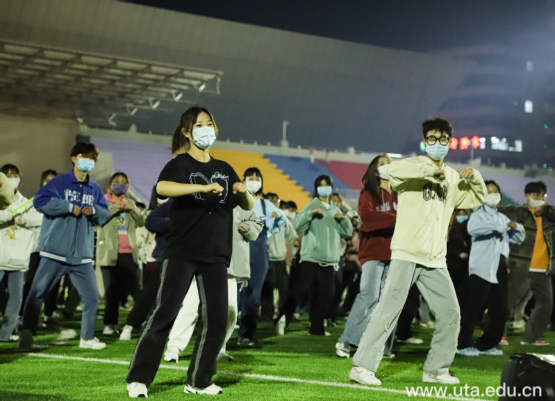 增强行动自觉,展现青春活力。为号召青年学子们 “走下网络,走出宿舍,走向操场”,持续开展“蔚然‘晨风’”活动——晨走、晨操、晨读、晨礼,鼓励广大学子坚持每日清晨锻炼一小时,正确开启健康生活好方式。4月1日至2日,院团委、学生处、体育健康学院联合组织举办集体户外活动——“青春正当时,起舞克时艰”集体舞和“‘疫’站到底 青春校园”主题音乐路演。活动中,同学们自发佩戴好口罩、按照一米间隔站好,保持防疫安全距离。夜幕降临,灯光如昼的操场上排起了整齐的队伍,伴着动听美妙旋律,大家欢快起舞,释放青春活力。一首首青春洋溢、优美动听的歌曲,更是表达了同学们对校园生活的热爱、对美好未来的期待。