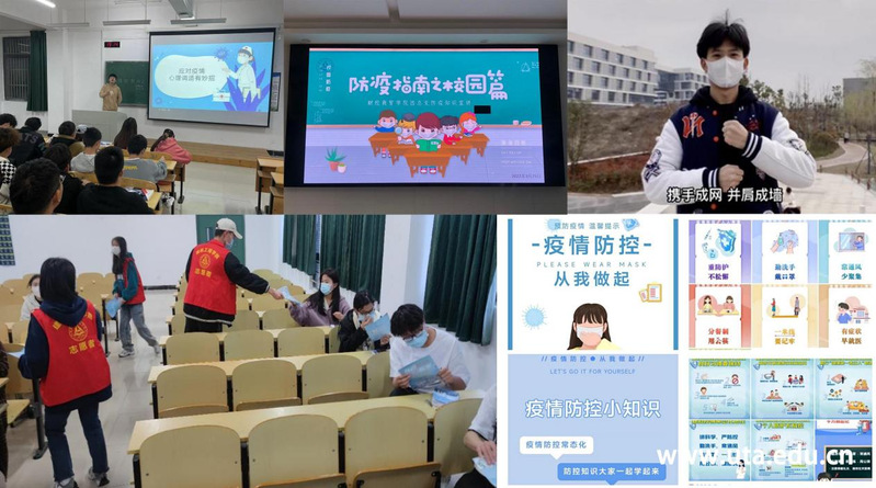 多维平台,以宣传助力疫情防控。各二级学院充分挖掘各宣传阵地,利用QQ、微信公众号、H5、短视频、户外电子屏、黑板报、宣传单、海报等媒介与手段积极做好日常健康小知识普及,倡导良好生活卫生习惯,真正让卫生健康知识在全体同学中得到普及。同时,为有效落实国家疫情防控工作要求,增强疫情防控意识,各团总支还积极进行防疫宣传,提高了同学们的防疫意识,让防疫知识入脑入心,人人响应,为当前防疫工作营造浓厚的攻坚氛围。其中,艺术设计学院团总支拍摄的《防疫手势舞》视频经由党委宣传部推荐,在人民日报新媒体客户端进行展示,展现了疫情防控期间我校青年学子昂扬向上的精神面貌。