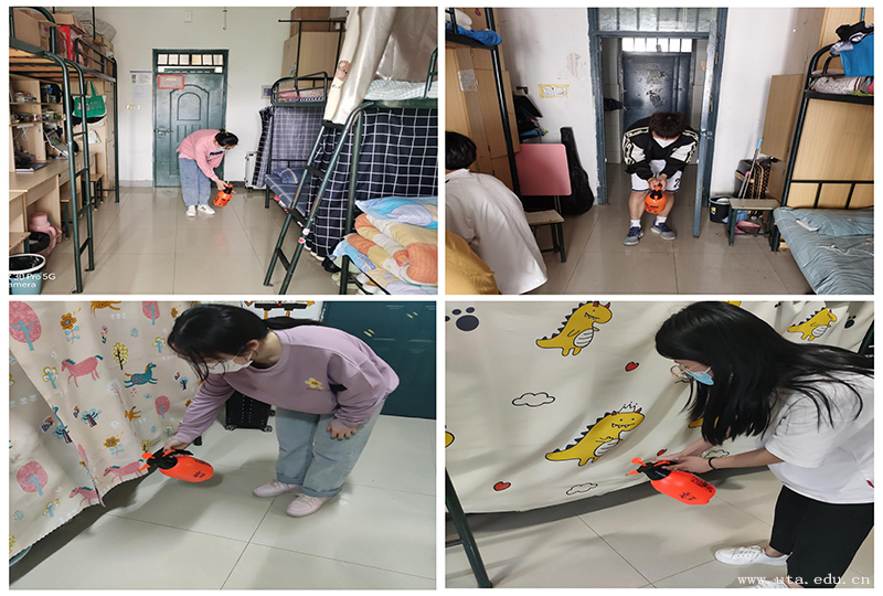 疾风知劲草,烈火见真金。疫情防控是没有硝烟的战场,也是检验初心使命的考场。团总支号召团学干部挺身而出、担当作为,切实落实“我为同学做实事”主题实践活动,以实际行动践行初心使命。团学干部学以致用,化身“守护员”、“消毒员”,利用自制的消毒液对学生宿舍开展病毒消杀。他们俯下身、弯下腰,当先锋、作表率,认真开展消杀,不放过每一个卫生死角,为学院疫情防控工作做贡献,为学生宿舍筑起一座有温度的“防疫墙”。