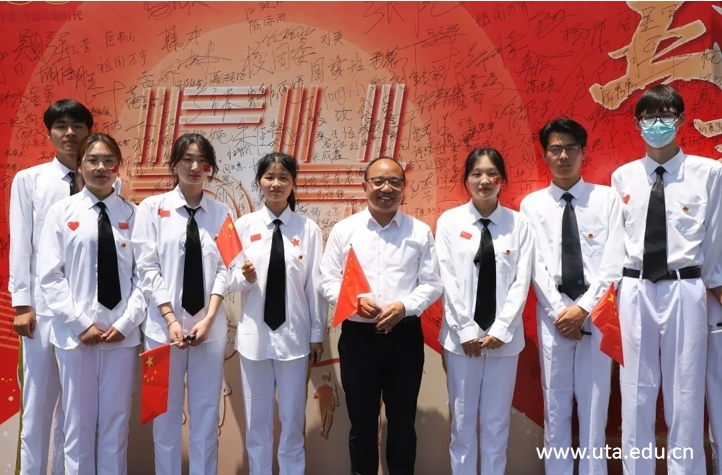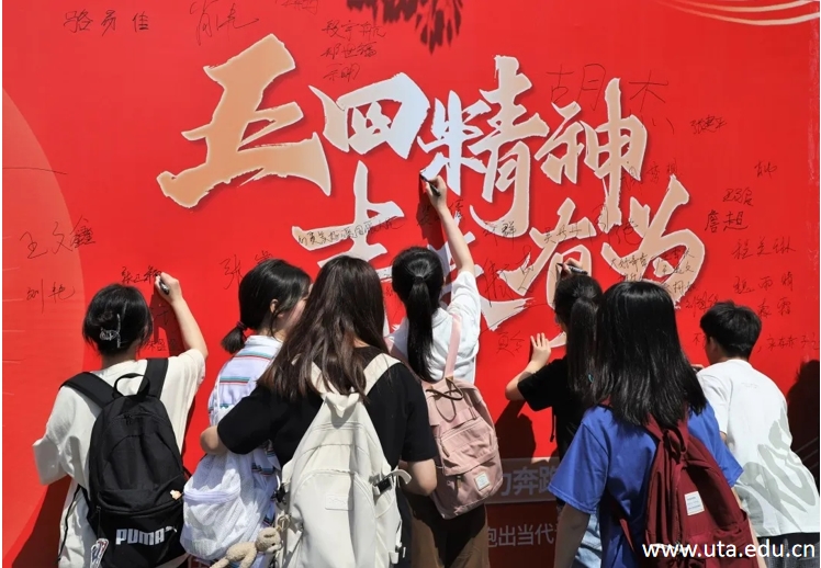 一次团旗合影,传承红色基因。团委国旗班在西区食堂前举办了“我与团旗合张影”活动。广大师生踊跃参加,满怀敬意地与团旗合影,并在展板上签名留言,表达对党、对祖国最诚挚的祝福。