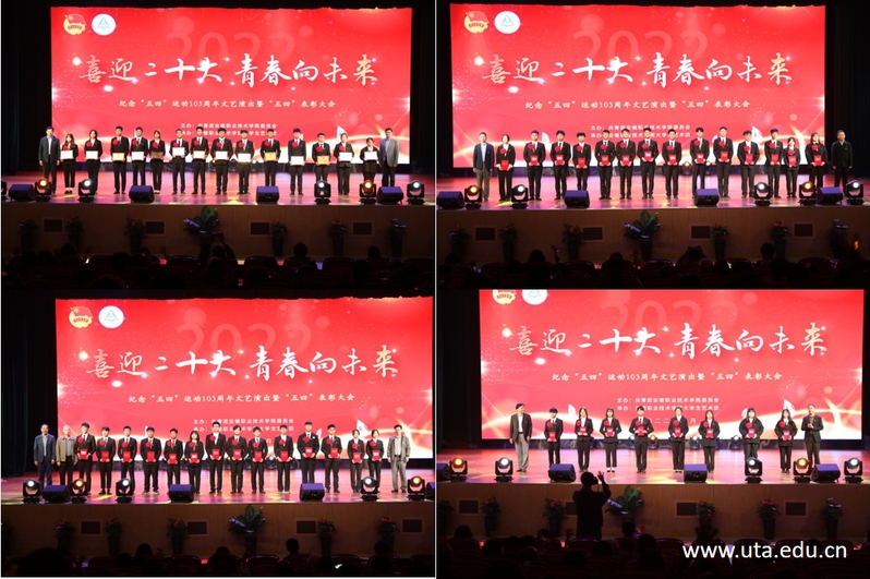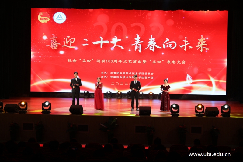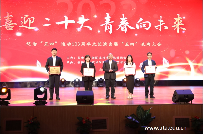 本网讯(院团委通讯员 蒯月亭 吕玥 江素华 张庚晨)为深入学习贯彻习近平总书记关于青年工作的重要思想,以实际行动迎接党的二十大胜利召开,庆祝建团100周年,积极培树典型,表彰先进,5月11日下午,学院在大学生活动中心举办“喜迎党的二十大 青春向未来”文艺演出暨“五四”表彰大会。党委书记李方泽,党委副书记、院长孙敬华,党委委员、副院长张智清,党委委员、副院长杨林国,党委委员、副院长宣岩松,督导员郭淼、林葆春,党委委员、体育健康学院院长马纯,各职能部门负责人,各二级学院党总支负责人、团总支负责人和学生代表参加活动。