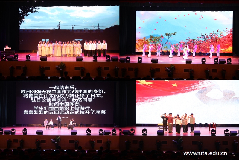 时代各有不同,青春一脉相承。伴随《青春之歌》激昂的歌声,本次活动正式拉开序幕。本次文艺演出分为“颂·青春”“舞·人生”“逐·信仰”“踏·征途”四个篇章。由大学生艺术团带来的歌曲《仰望星空》赞扬了抗疫期间坚守岗位、负重前行的白衣天使;管理学院带来的小品《星星之火》讴歌了无数的革命先驱,他们将希望的种子撒向了人间,绽开了一片绚烂的红色;朗诵《五四,永不熄》向大家传递着永不熄灭的五四精神;歌伴舞《一起向未来》展现了人类在面对困境时的坚强姿态,向未来,有所希冀,向阳生长。此外,舞蹈《天浴》《映山红》,歌曲《青春》《致敬勇士》《这世界这么多人》,团体操《礼仪操》、舞台剧《梅兰芳》、朗诵《驼峰航线》等多个节目陆续登场,安职学子把对党、对祖国的热爱化作满腔热情,通过丰富多样的艺术形式传递给现场的观众。