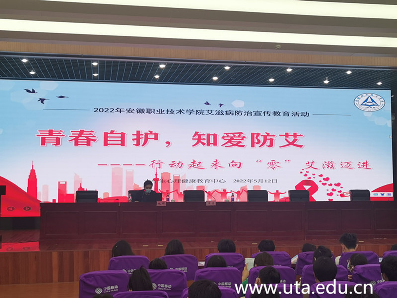专题讲座。5月12日晚,学院特邀合肥市疾控中心防艾科科长姚晖在图文信息中心三楼报告厅作了“青春自护,知爱防艾——行动起来向‘零’艾滋迈进”专题讲座。活动通过“线上+线上”的形式联合开展,现场146名班级心理委员和部分学生代表参加线下学习,各班同学线上观看学习讲座。姚晖分别从艾滋病的危害认识、预防知识、检测和治疗、法律和法规等四个方面,结合生动案例阐述了艾滋病的相关知识。讲座还开展了青年学生艾滋病暴露前预防、暴露后阻断调查问卷活动,增进了同学们对艾滋病知识的了解。