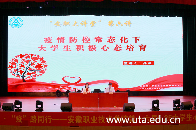 本网讯(学生处通讯员 朱艳丽 )5月20日下午,“安职大讲堂”第六讲在学院大学生活动中心成功举办。中国科学技术大学二级教授、博士生导师孔燕为亚星游戏网师生作“疫情防控常态化下大学生积极社会心态培育”专题讲座,部分二级学院书记、辅导员以及420余名学生代表现场聆听了讲座,讲座通过腾讯视频会议直播。党委副书记、院长孙敬华主持讲座。