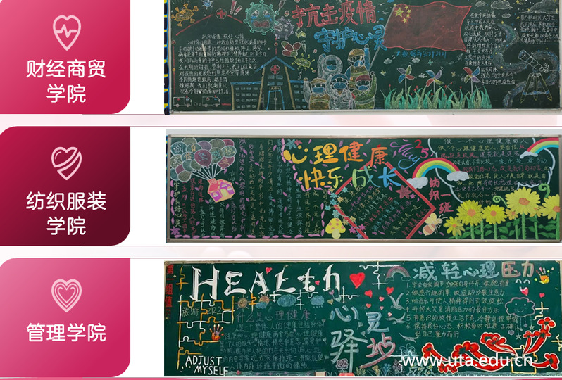本届心理健康月主要由“关爱自我、放飞心灵、增强心能、领悟人生、共同成长”五大专题组成,包含了专题讲座知识宣讲和知识竞赛、主题黑板报评比、心理征文比赛、心理手绘画比赛、校园心理剧大赛、素质拓展和心理健康打卡等八个篇章。各二级学院心理活动涵盖竞赛、讲座、素质拓展等,活动内容涉及疫情期间的压力应对、人际交往、自我探索和自我发展等多个方面,参与总人数累计13500余人次。