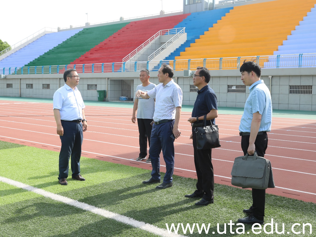 会后,周祥一行实地察看了学院体育馆、西区田径场。