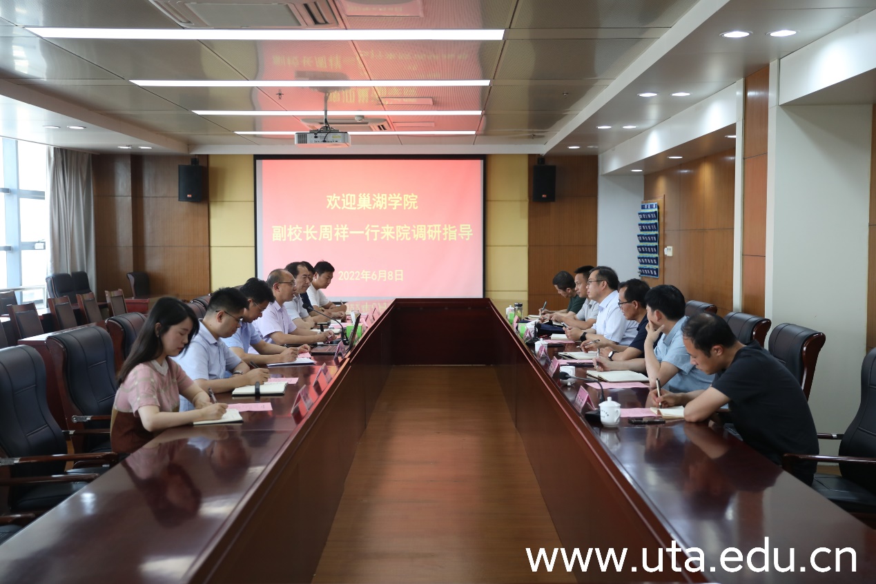 会上,李方泽代表学院对周祥一行的到来表示热烈欢迎,并简要介绍了学院发展历史沿革和办学特色。李方泽表示,这次贵校来访,既为我们传经送宝,又为我们提供了一次难得的学习机会。两校之间在办学模式上有着诸多的共同点,巢湖学院成熟的办学思路和先进的治校做法,值得我们学习借鉴。目前学院正处于申办职教本科的关键时期,突出区域和行业发展需求,坚持产教融合的发展路径,在体制机制创新上积极求变,成为学院综合改革的关键所在。希望两校之间通力合作,相互交流借鉴,推动两校在高质量发展中实现共赢。