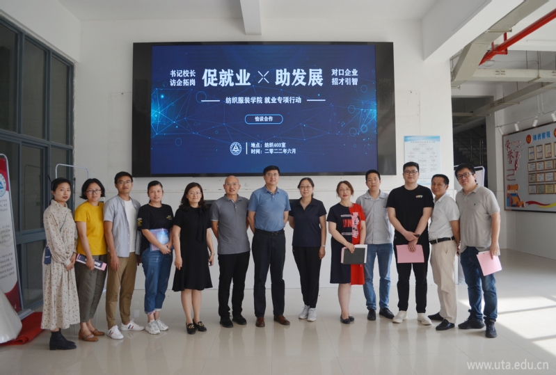 本网讯(纺织服装学院通讯员 杨劲)为进一步落实高校书记校长访企拓岗促就业专项行动要求,进一步深化产教融合、推进校企合作,力促学生高质量就业,6月9日下午,六安英瑞针织服装有限公司,大生纺织(合肥)有限公司,合肥大闺坊服饰有限公司等企业来院洽谈合作。学院党委委员、副院长张智清,纺织服装学院党总支副书记袁晓玲、副院长张文徽及教师、实训员、毕业班辅导员代表参加会议。会议由袁晓玲主持。