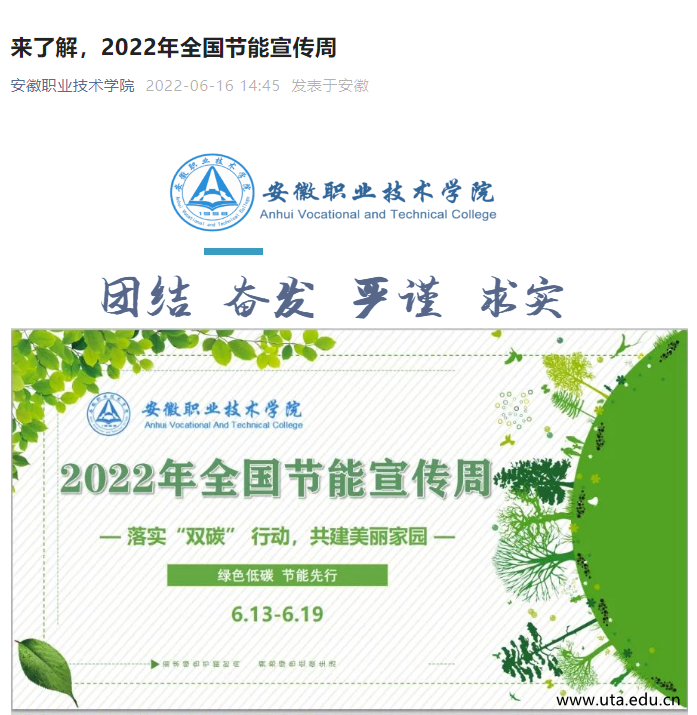 本网讯(发展规划处通讯员 刘雨航)为落实双碳行动,深入开展节能宣传教育,全面提高师生节能意识,在第32个全国节能宣传周和第十个全国低碳日来临之际,学院开展了节能宣传周系列活动。