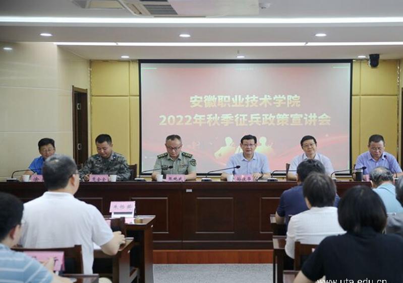 本网讯(学生处通讯员 吴丽丽)为深入贯彻习近平强军思想,进一步落实国家相关征兵工作要求,帮助学生全面了解征兵政策,激发学生应征入伍热情,7月20日上午,学院在图文信息中心九楼视频会议室举办2022年秋季大学生征兵政策宣讲会。瑶海区委常委、人武部上校政委张纯武,新站高新区党工委办公室副主任杨家俊等同志应邀作政策宣讲,党委副书记、院长孙敬华,党委委员、副院长宣岩松,各二级学院党总支负责人、征兵联络员、毕业班辅导员及学生代表参加会议,会议由宣岩松主持。