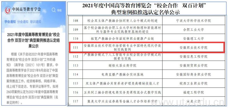 中国高等教育学会于2021年9月启动了中国高等教育博览会“校企合作 双百计划”典型案例推选工作,经资格审核、网络评审、线上线下双走访、专家评议等环节,拟将260项案例认定为2021年度中国高等教育博览会“校企合作 双百计划”典型案例。