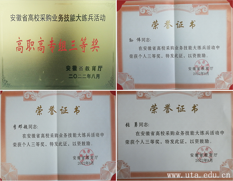 本网讯(国资办通讯员 张勇)8月28日,由安徽省教育厅主办,安徽艺术学院和安徽省招标采购协会承办的安徽省高校采购业务技能大练兵活动在安徽艺术学院落下帷幕。经过激烈角逐,由院党委委员、纪委书记李荣富担任领队,亚星游戏网国资办孙伟、李邓超、张勇三名同志组成的代表队均获得个人三等奖,学院获得高职高专组集体三等奖。