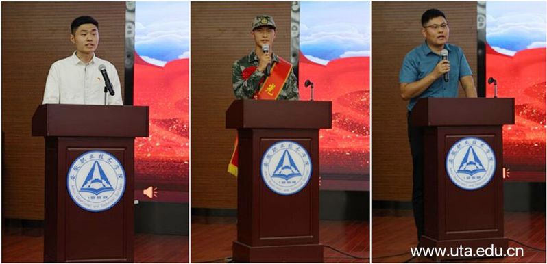 欢送会在庄严的国歌声中拉开帷幕,2017级软件技术专业毕业生董学成代表退役大学生士兵报告了自己在部队服役期间的淬炼与收获,结合自身经历向预定新兵们提出三点建议,希望他们做好心理建设,尽快适应军营生活;一步一个脚印,打牢基础,争优创先;明确发展方向,奋斗不止,拼搏不息,以优异的成绩为母校和家人争光。铁道工程技术专业沈万杰代表入伍大学生发言,汇报了自己的入伍初心和投身军营、立志报国的决心,并代表全体预定新兵庄严承诺:到部队后一定牢记初心使命、服从命令、遵守纪律、听从指挥、刻苦训练、努力学习,绝不辜负祖国和人民的期望。学生家长代表张志武发言,嘱咐预定新兵要牢记父母的深情嘱托,放下对家人的牵挂,严格要求自己,早日成为一名优秀的革命军人。