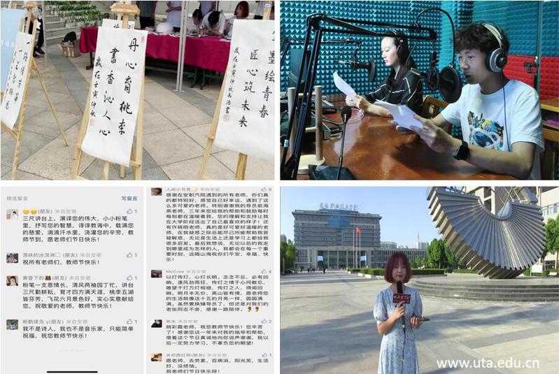 笔墨三分诗意,言语七分师情。学团联书画协会的同学们将爱注于笔尖,将情汇于文字,用遒劲有力的书法写下了“恩师如灯,照亮前路”等动人语句。校广播台的同学们制作专题播音稿件,颂扬老师以热爱教育的定力、淡泊名利的坚守,引领学生发展、锤炼学生品格,为教育事业倾注汗水和心血的精神。团委宣传部组织广大青年学子参与视频录制,发布推文“老师,我想对你说”教师节祝福征集活动,表达对老师的感恩之心和节日祝福。
