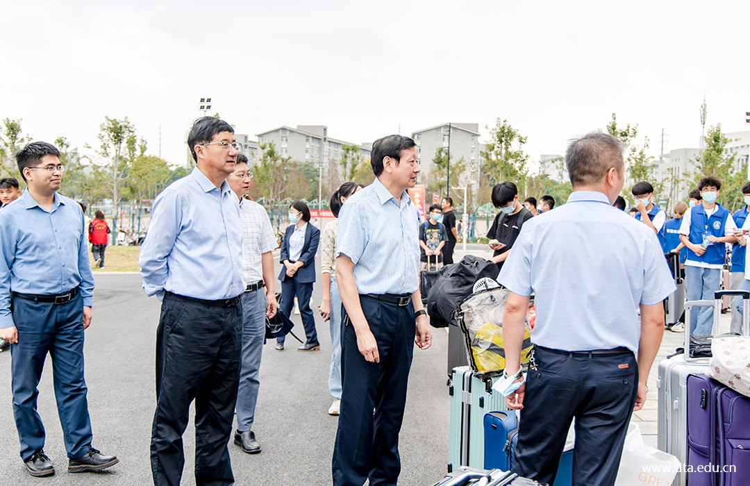 党委书记李方泽,党委副书记、院长孙敬华等领导分赴报到现场欢迎新同学,勉励新生们学好专业技能,不负青春、不负韶华、不负时代;慰问各学院迎新点、绿色通道、咨询处、志愿者服务站等现场工作人员和志愿者,详细了解新生报到情况,并强调要在做好疫情防控的前提下,为新生报到做好服务,确保2022级新生开学顺利有序。