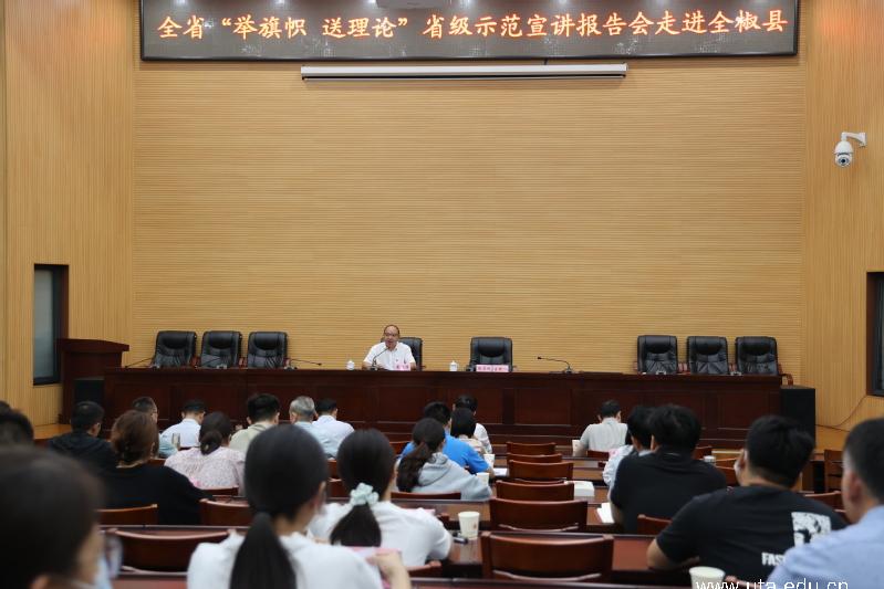 本网讯(党委宣传部通讯员 孙涛)9月14日下午,全省“举旗帜·送理论”学习贯彻习近平总书记在省部级主要领导干部专题研讨班上重要讲话精神、《习近平谈治国理政》第四卷省级示范宣讲报告会在全椒县委党校举行。省委宣讲团成员、学院党委书记李方泽作专题宣讲报告。省委讲师团组教处副处长马力强,滁州市委讲师团团长林卫东、副团长魏礼彬、王芳敏,全椒县委常委、宣传部部长陈启诚,全椒县各镇党委宣传委员、宣传干事,部分县直单位分管负责同志等参加报告会。会议由陈启诚主持。