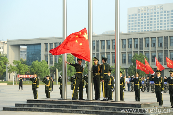 迎着朝阳,国旗护卫队员踏着整齐矫健的步伐,护卫着神圣的国旗走向升旗台。伴随着庄严的国歌声,鲜艳的五星红旗冉冉升起。现场师生向国旗行注目礼,满怀对祖国的热爱和崇高敬意,唱起了嘹亮的国歌。