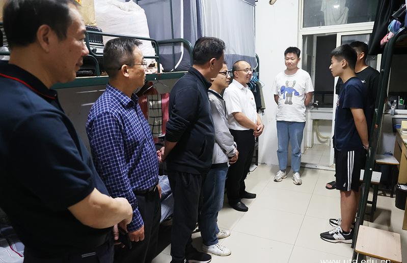 本网讯(学生处通讯员 王曾)9月24日晚,党委书记李方泽,党委委员、副院长宣岩松,党委委员、体育健康学院院长马纯深入学生寝室,实地走访了2022级高职和2022级安徽建筑大学(联合培养)专升本新生宿舍,与新生们面对面交流,引导新生尽快适应新生活、新环境。党委宣传部、学生处、教务处、后勤管理处、团委、马克思主义学院、智慧财经学院等单位同志参加走访活动。