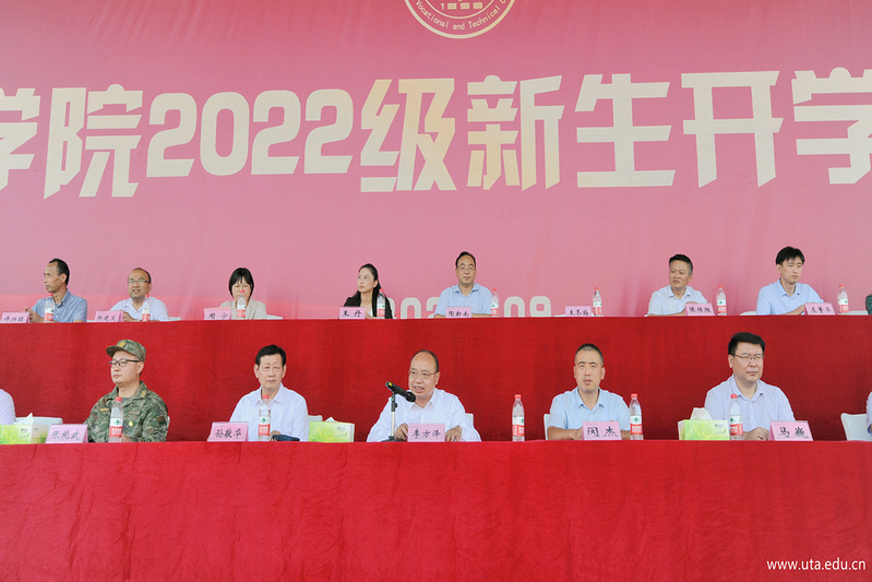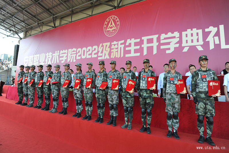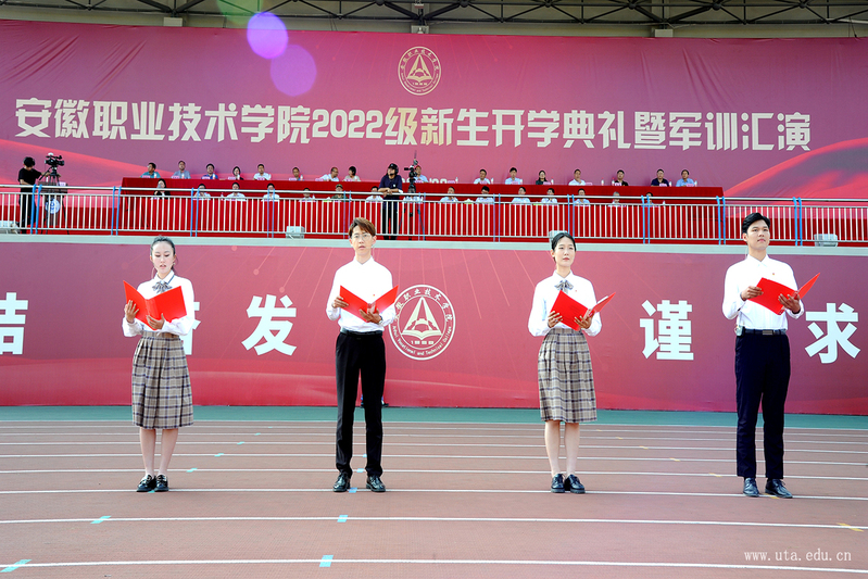 本网讯(学生处通讯员 程银林)最是一年好风景,正是橙黄橘绿时。9月30日下午,2022级新生开学典礼暨军训汇报表演在学院田径运动场隆重举行。学院党委书记李方泽,党委副书记、院长孙敬华,安徽建筑大学党委常委、副校长闵杰,瑶海区委常委、人武部上校政委张纯武,学院党委委员、副院长张智清,党委委员、副院长杨林国,党委委员、副院长宣岩松,党委委员、纪委书记李荣富,学院督导员郭淼,学院督导员林葆春,学院党委委员、体育健康学院院长马纯,合肥铁路工程学校党委书记、校长胡辉平,安徽能源技术学校党委书记、校长叶鸽,优秀毕业生代表、南京溧水开元名都大酒店总经理潘茜,各职能部门、各二级学院负责人、教师代表以及2022级全体新生参加典礼。典礼由李方泽主持。