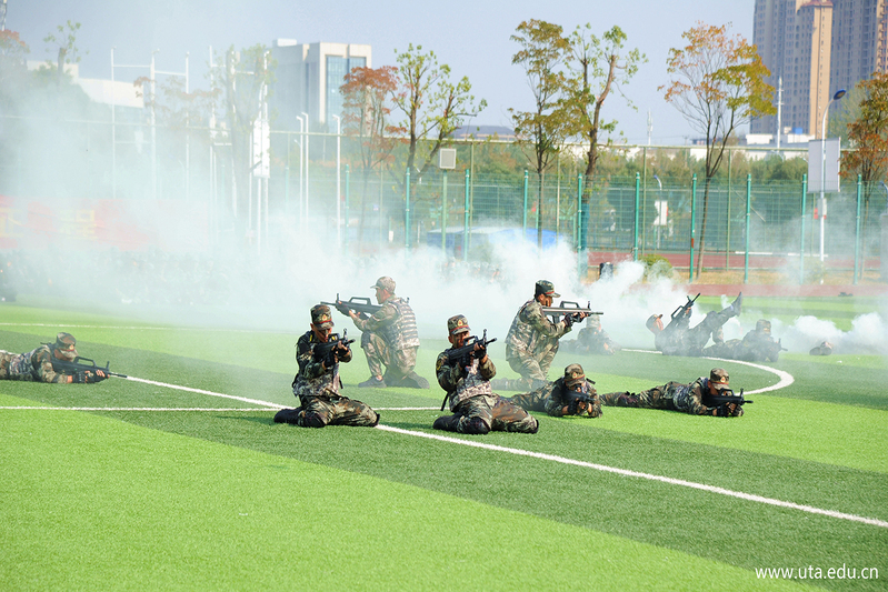 迷彩点燃青春梦,军训淬炼报国志。汇报表演在雄壮的国歌声中拉开帷幕。身着戎装的6600余名新生雄姿英发,气宇轩昂等待着最后的检阅。15个学院32个分列式方队依次经过主席台,他们以整齐的队列展示着15天军事训练的成果,规范的动作、嘹亮的口号,个个精神抖擞,迈着稳健的步伐接受检阅,展现了新时代安职学子的豪迈激情。在军体拳、匕首操方阵表演中,同学们以刚劲有力的踢脚勾拳,刚猛连贯的军体动作,尽显2022级新生奋发向上的精神风采,赢得了全场阵阵掌声。教官战术表演更是燃爆全场,他们手握枪支,目光灼灼,脚步轻捷,组成一支纵队迈步前进,上演了一场惊心动魄的枪支作战的情景表演,格斗场面,气势超燃,同学们激动欢呼,掌声不断。