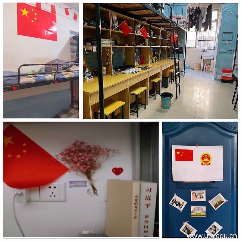 为进一步推动宿舍文化建设,营造浓厚节庆氛围,弘扬新时代青年的爱国主义情怀,团委组织各级团组织开展“‘宿’说青春,共绽芳华”最美宿舍评选活动。活动期间,同学们围绕主题,精心布置,各宿舍崭新的五星红旗高高挂起,洋溢着浓厚的喜庆氛围,彰显着最美的中国红,成为一道靓丽的风景。值班宿管阿姨说道:“同学们宿舍国庆主题的装扮也实在太有心了,节日的氛围一下子出来了。”团委后期将进行院级评比,树立良好寝室榜样。