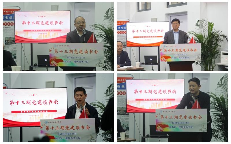 本网讯(现代商务学院通讯员 杨玉琦 图书馆通讯员 陈茂)阅读点亮心灵,疫情难阻书香。10月27日晚,由图书馆和现代商务学院联合举办的第十三期党建读书会在现代商务学院物流实训室举行。本次读书会创新学习方式,100余位书友“线上+线下”双线联动,营造浓厚学习氛围。院党委书记李方泽,党委委员、副院长张智清,党委委员、副院长杨林国,党委委员、纪委书记李荣富与其他书友一道,共享阅读之乐,畅谈阅读感悟。本期读书会由现代商务学院党总支副书记许兴旺主持。
