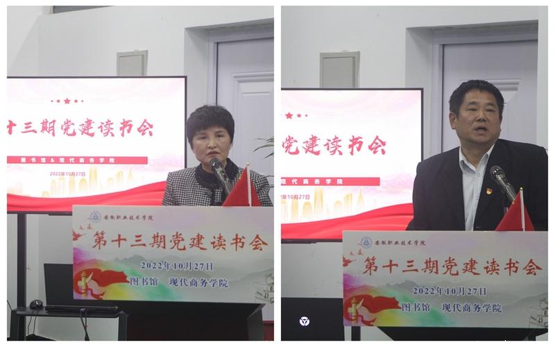 读书会上,读书分享人杜淑琳和高立克分别分享了《习近平在福建》和《领导干部国学课二十五讲》的读书心得,为书友们奉上了一场精彩的阅读盛宴。杜淑琳引用习近平总书记的五句话“钉钉子精神,挤时间学习,争分夺秒地学习”“滴水穿石、弱鸟先飞”“马上就办、真抓实干”“数字福建”“一定牢记政府前面的人民两字”,带领各位书友深刻感悟领袖大刀阔斧、超前谋划、开拓创新的领导风范,率先带头、亲身示范、勇于担当的工作作风,心系基层、心系群众、心系民生的赤诚情怀,同时对照现代商务学院发展现状,提出了要发扬“滴水穿石”“弱鸟先飞”的艰苦奋斗精神,树立“马上就办”“真抓实干”的工作作风,绵绵用力、久久为功、攻坚克难,致力于打造国内一流的新商科学院。高立克的分享让书友们对传承优秀传统文化有了进一步的认识,他还从“安职之幸运”“安职之和谐”“安职之幸福”三个方面,梳理总结了学院在院党委的带领下,从抓党建入手,在“凡事讲政治”上作表率,在“为师生谋事”上见行动,在“干事重实效”上使长劲,在“成事争一流”上立标杆,安职人的精神面貌和校园环境发生了翻天覆地的变化。