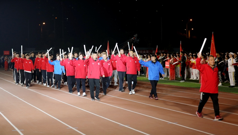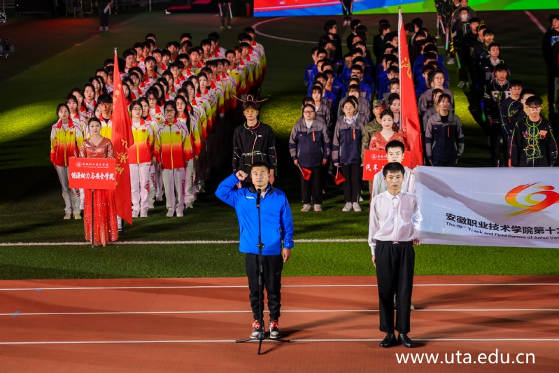本网讯(体育健康学院通讯员 李玲 党委宣传部通讯员 叶惠玲 团委通讯员 范海宁)学习党的二十大,永远跟党走,奋进新征程。在党的二十大刚刚胜利闭幕,全党全国深入学习宣传贯彻党的二十大精神之际,11月1日晚7点,亚星游戏网第十九届田径运动会在田径场隆重开幕。院领导班子成员李方泽、孙敬华、张智清、杨林国、宣岩松、李荣富、马纯,安徽省教育厅体卫艺处科长陆涛,安徽能源技术学校党委书记、校长叶鸽,合肥铁路工程学校党委书记、校长胡辉平出席开幕式,学院各部门负责人、二级学院党政负责人、全体运动员、裁判员、领队和各学院师生代表参加开幕式。开幕式由马纯主持。