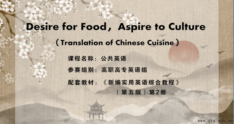 外语学院教师团队本次作品题目为《Desire for Food, Aspire to Culture-Translation of Chinese Cuisine》。该微课介绍了中国美食的翻译策略,帮助学生归纳总结中国菜肴的翻译思路与规则,了解中国美食背后的文化符号,以提高学生的跨文化交际能力,建立文化自信。