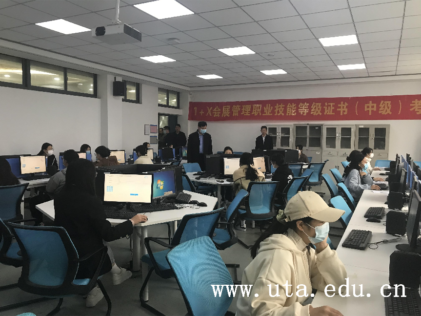 本网讯(文化与旅游学院通讯员 李丽丽)11月13日,“1+X”会展管理职业技能等级证书(中级)考试在文化与旅游学院实训室进行,2020级和2021级会展策划与管理专业50名学生参加考试。党委副书记、院长孙敬华,党委委员、副院长张智清,党委委员、副院长杨林国,党委委员、纪委书记李荣富,督导员林葆春到场巡视。