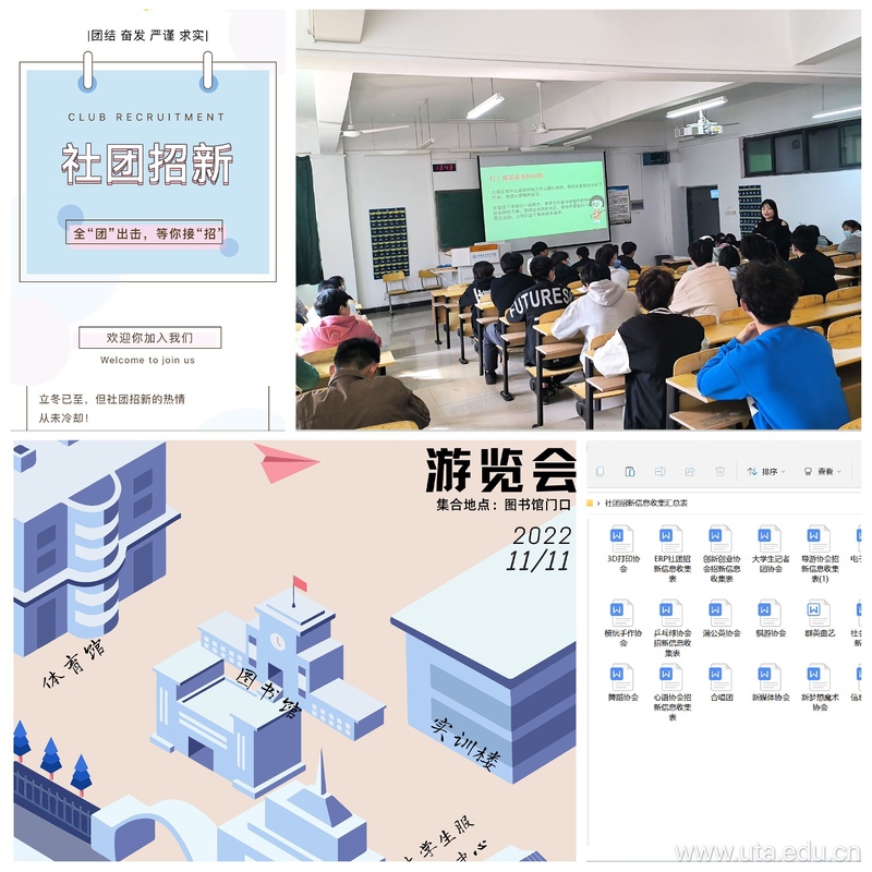 精心筹备,全景式展现社团风采。截至2022年10月,我院完成注册的学生社团共有43个,其中包含思想政治类5个,志愿公益类3个,职业技能类15个,文化艺术类14个,体育运动类6个。为了使2022级新生更好地了解学生社团,积极参与社团招新活动,院团委、学团联前期精心筹备,组织新任社团负责人工作培训、宣传品收集审核、制作团委公众号推文等工作,根据社团类型统筹设置招新游览会内容,指导各社团通过QQ空间、晚自习宣传等线上、线下,做好理论学习、技能体验、文化传播等全景式展现社团风采。