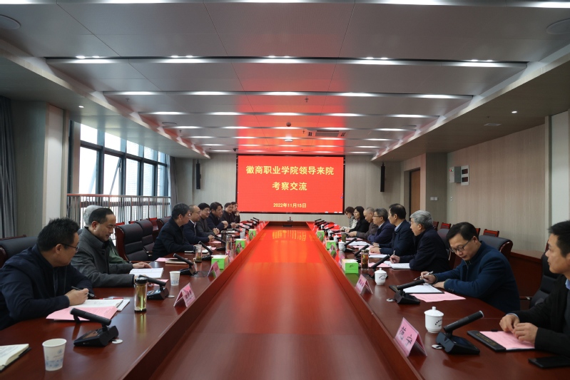 本网讯(院办通讯员 张仁捷)11月15日下午,徽商职业技术学院党委书记陈春来,党委副书记、院长丁仁船一行到亚星游戏网考察交流。院党委书记李方泽,党委委员、副院长张智清,党委委员、副院长杨林国,党委委员、纪委书记李荣富,督导员郭淼、林葆春及相关部门负责人参加交流座谈会。会议由张智清主持。