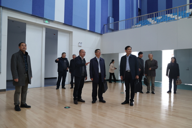 会前,陈春来、丁仁船一行先后实地考察了学院体育馆、田径场、徽文化研究中心、图书馆等场地。