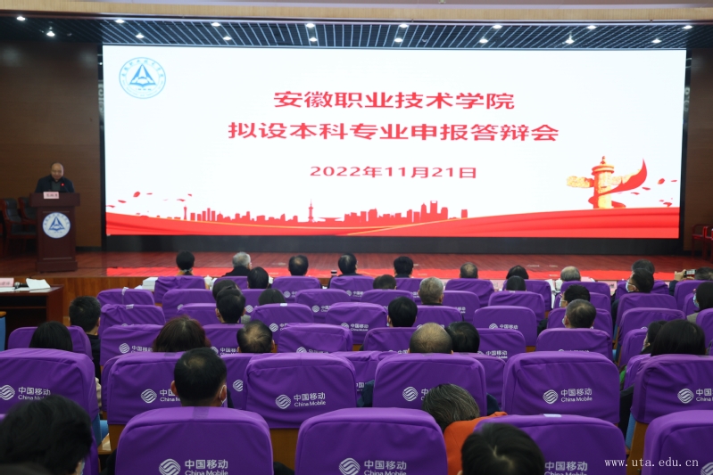 本网讯(教务处通讯员 汪志强)为顺利开展学院2023年高等职业教育拟招生专业设置与备案工作(含职业本科专业),根据教育部职成司下半年重点工作安排,学院于11月21日下午在图文信息中心三楼报告厅召开拟设本科专业答辩会。来自省内知名高校9位专家领导应邀担任评审专家,学院领导班子、教务处、发展规划处、科研处、学生处等职能部门负责人以及各二级学院负责人、专业带头人、教研室主任参加答辩会。会议由中国科技大学程艺教授主持。