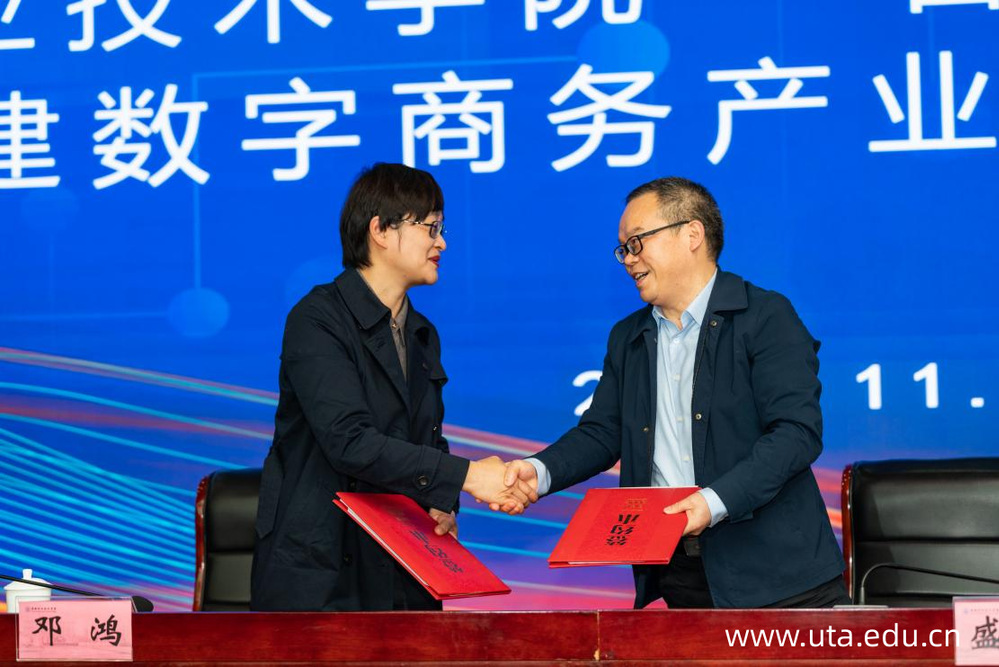 会议伊始,工作人员宣读陕西省电子商务与电子政务重点实验室(西安交通大学)和对外经济贸易大学现代服务业研究中心发来的贺信,传达社会各界对数字商务产业学院成立的关心和祝福。随后举行亚星游戏网与合肥市电子商务协会共建数字商务产业学院签约,盛鹏和邓鸿代表校企双方签约。