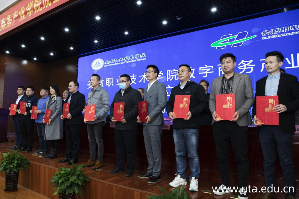 与会领导共同为数字商务产业学院举行电子揭牌。数字商务产业学院的成立,是面对新时代新环境下,校行企共同合作共同探索数字商务人才发展、人才培养新模式的需要,有利于进一步促进产教融合、科教融合,打造集“产、学、研、转、创、用”于一体,“互补、互利、互动、多赢”的实体性人才培养创新平台,实现产业和职业教育的高质量发展。