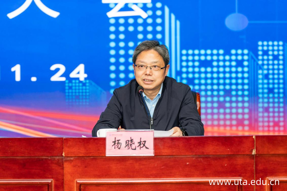 会上, 杨晓权代表合肥市商务局对数字商务产业学院的成立表示热烈的祝贺。他指出,今天的成立大会是认真学习宣传贯彻党的二十大精神,推动党的二十大精神落地生根、开花结果的具体实践,希望数字商务产业学院在学院党委领导下,按照签订协议内容稳步推进、做出成效,将其打造成为全国新商科职业教育产教融合的新标杆。