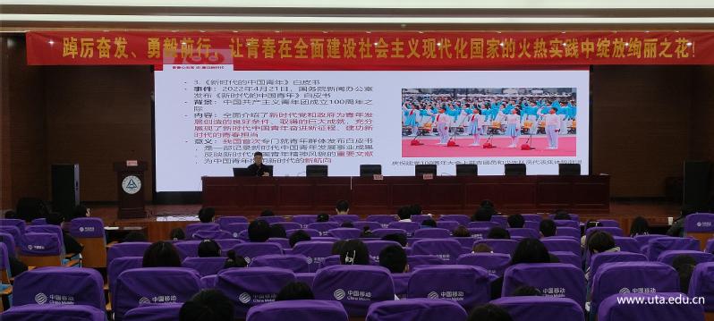 课上,赵文超以学习宣传贯彻党的二十大精神和习近平总书记在庆祝中国共产主义青年团成立100周年大会上的重要讲话精神为出发点,旁征博引,深入浅出,带领大家回顾了党领导下的青年运动的光辉历程,明确了党的领导对推动青年运动发展的重要意义,了解了新时代全面从严治团的新提法、新发展及其必要性和重要性。赵文超向同学们分享了自身从事共青团工作的经历经验与工作感悟,让大家对讲座内容有了更直观、更全面、更深刻的理解与把握。