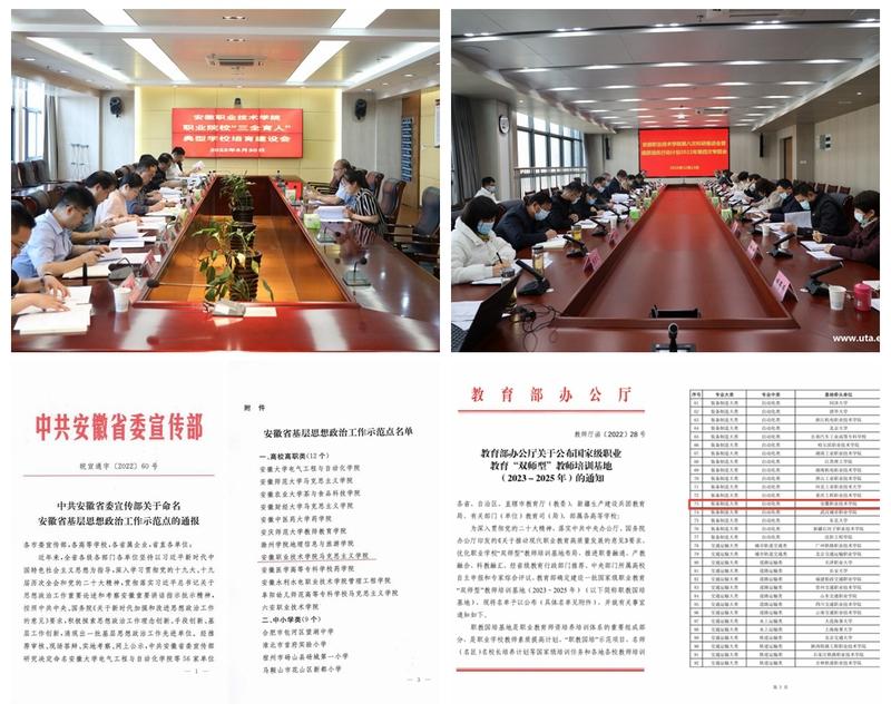 学院党委高度重视思政工作,不断完善学院思想政治工作体系。总结推广“三全育人”安徽省首批综合改革试点校经验,积极构建“五位一体”育人机制,形成“六纵六横”育人格局。开展提质培优项目建设,建设“两站两服务”,深入挖掘徽文化教育功能,推动高职院校思想政治工作有效经验固化转化。2022年12月,马克思主义学院获批2022年全省基层思想政治工作示范点。构建职业教育多主体校企联合师资培养培训模式,共同打造高质量职业教育“双师型”教师培训基地,着力提升教师思想政治工作质量。2022年12月,亚星游戏网获批国家级职业教育“双师型”教师培训基地。