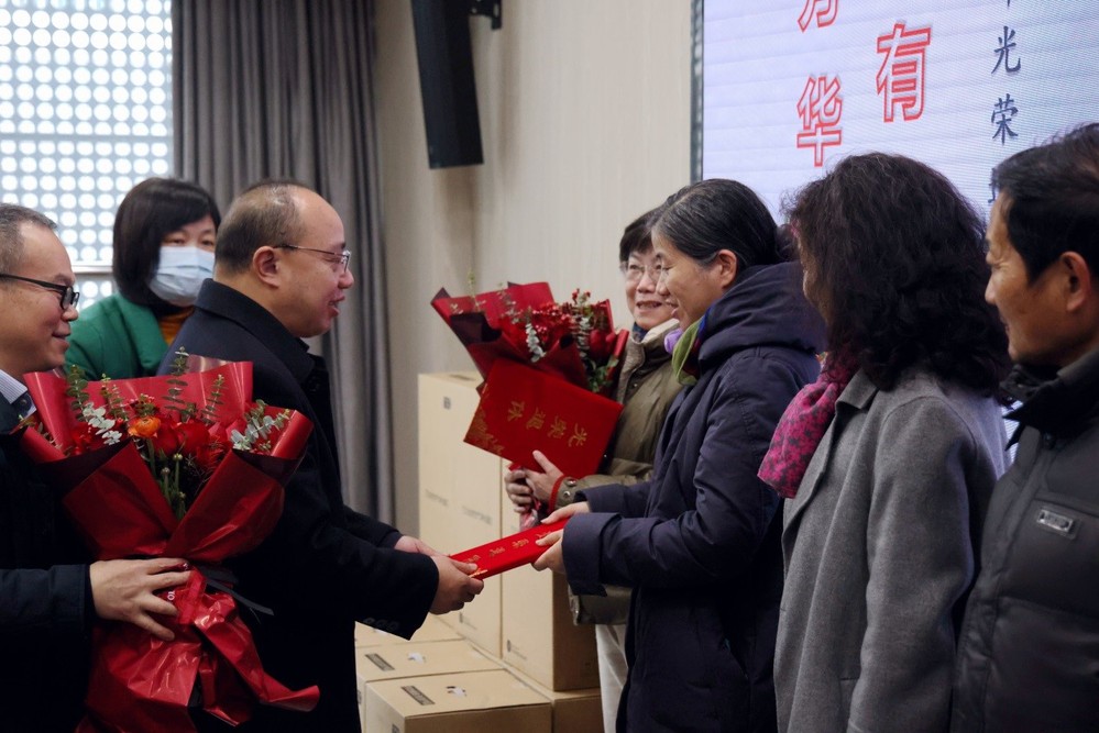 本网讯(离退休工作处通讯员 解滨)为表达对离退休教职工的关怀和美好祝愿,进一步增强离退休教职工的荣誉感、归属感和幸福感,1月10日上午,学院在至公楼举办了以“致敬芳华,感恩有您”为主题的荣休仪式,用一种温馨而庄重的形式,向2022年退休的教职工表达由衷的敬意和感谢。院党委书记李方泽,党委副书记、院长盛鹏,党委委员、副院长张智清,党委委员、副院长杨林国出席仪式。院办公室、组织部、宣传部、人事处、财务处、工会、离退休工作处等部门负责人和离退休党总支各支部书记参加仪式。仪式由张智清主持。