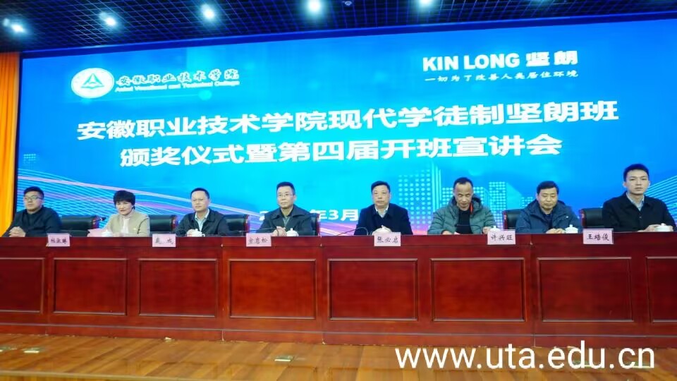 宣岩松作讲话,他指出,学院与坚朗合作三年获得了可喜成绩,也积累了丰富经验,不仅为学风建设注入新动力,也为培养高素质技能型人才发挥了积极作用。他强调,校企合作、产教融合是创建现代学徒制的基础,现代学徒制的有效运行是解决学生高质量就业的有效途径,也能更好地促进职业院校教师深入服务企业,充分发挥学院与企业资源优势,更好地为社会培养高素质技术技能人才,为广大学生成长成才提供更多机会、更好的条件。他希望同学们要积极发扬坚朗公司“全力以赴、同心协力”的企业精神,努力走出一条“自强不息”“超越自我”的成才之路。