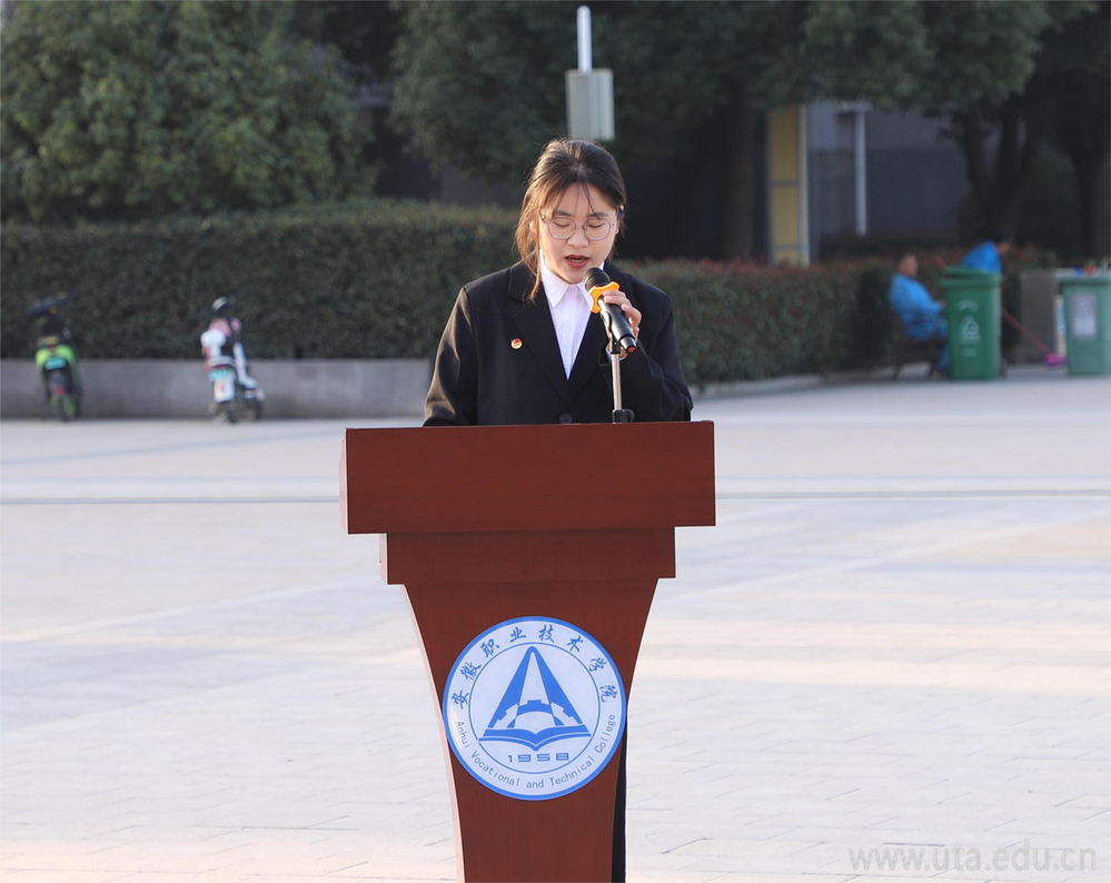 升旗礼毕,智慧财经学院大数据与会计2222班陈心茹作《传承雷锋精神,砥砺奋斗青春》的国旗下发言。她号召同学们学习雷锋精神的时代内涵和实践要求,深刻认识自身所面临的时代际遇和历史责任,以大爱胸怀和进取锐气做一个有理想、敢担当、能吃苦、肯奋斗的新时代好青年,为学院高质量发展赋能增效,为实现中华民族伟大复兴贡献青春力量。