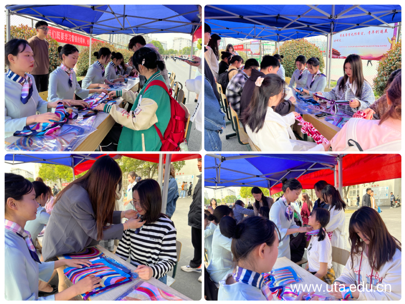 办实事,授技能。细节彰显文明,礼仪重在践行。3月7日中午,学院团委专职团干刘心洁带领大学生艺术团在西区食堂门口开展了“一对一”传授系丝巾的方法和技巧的活动。艺术团的同学们现场亲自示范,耐心讲解,指导操作步骤,帮助同学们掌握系丝巾的要领,真正为同学们办实事。优雅端庄的姿态和大方得体的举止展示了安职学子自信大方的精神风貌,活动现场同学们积极参与,气氛热烈。