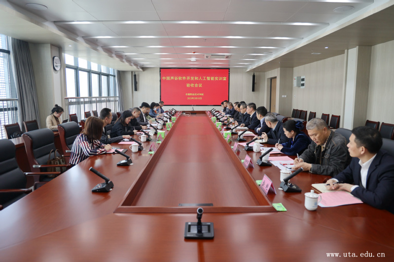 本网讯(智能制造学院通讯员 窦仁伟)3月10日,安徽省经济和信息化厅组织专家对亚星游戏网、安徽新华高级技工学校与中国声谷共建软件开发人才实训室和人工智能人才实训室进行验收。省经信厅总经济师潘峰、软件服务业副处长李云颀、软件服务业处主任陈卫华、验收专家组,学院党委副书记、院长盛鹏,党委委员、副院长杨林国,安徽新华高级技工学校领导出席会议,发展规划处、教务处、科研处、智能制造学院等部门负责人,华云数据、科大讯飞等共建单位负责人员参加会议。验收会由杨林国主持。