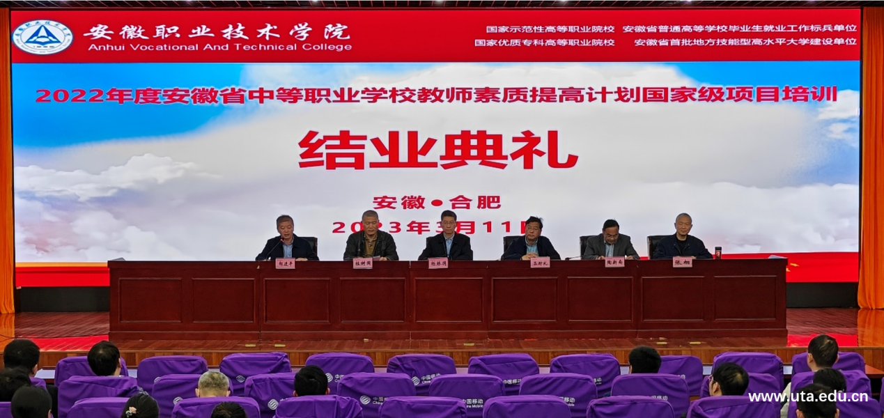 本网讯(智能制造学院通讯员 秦连好)3月11日上午,学院在图文信息中心学术报告厅举行2022年度安徽省中等职业学校教师素质提高计划国家级项目培训班结业典礼。学院党委委员、副院长杨林国,办公室主任吕时礼,智能制造学院党政负责人,培训班教师代表、班主任和来自全省70多所中职学校的140余位学员参加了典礼。典礼由智能制造学院党总支副书记郝进平主持。