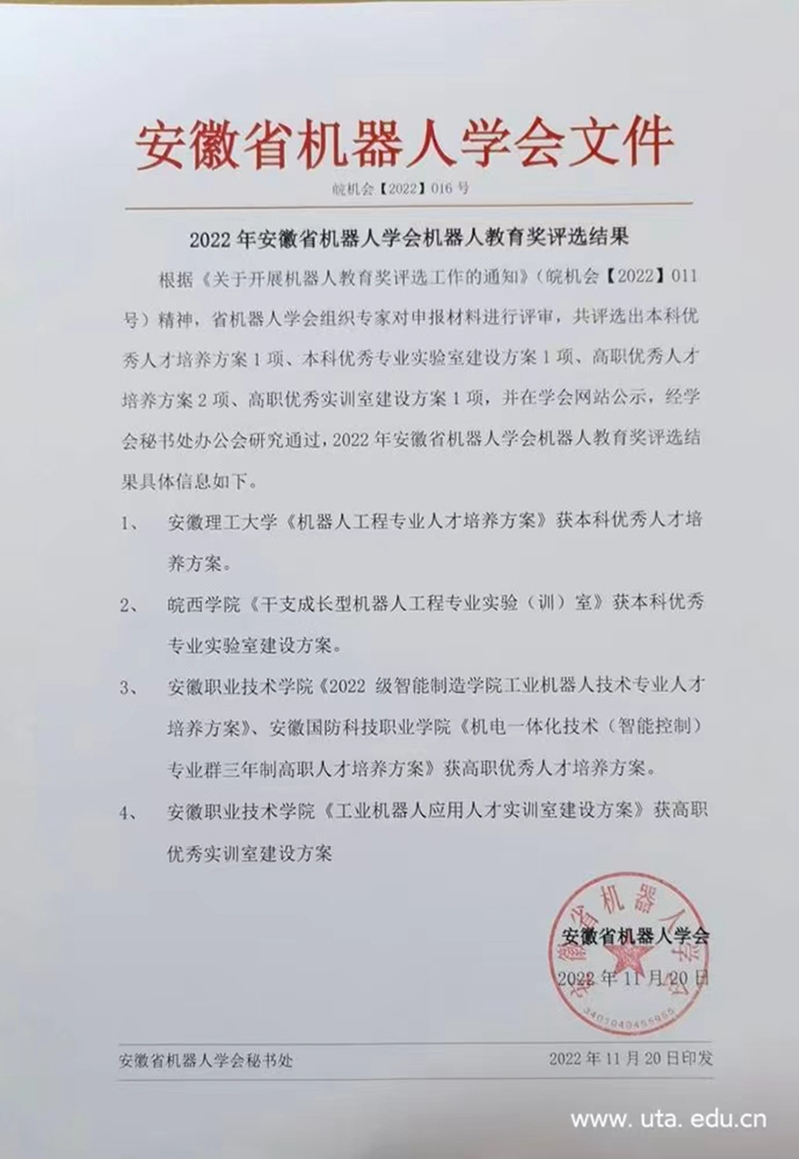 亚星游戏网作为安徽省机器人学会会员单位,此次获奖是学会对亚星游戏网机器人人才培养的肯定和鼓励。通过与专家学者的深入交流,亚星游戏网对机器人产业的未来发展、专业建设、人才培养有了新的认识,对于推动亚星游戏网在机器人领域相关学科发展,加强师资队伍建设、人才培养方案的设计、课程建设、专业实验室建设等方面有着积极作用。