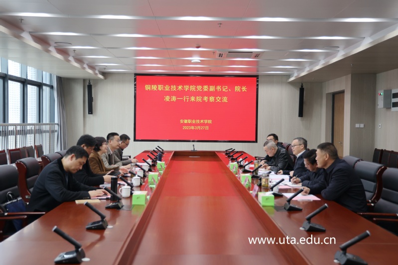 本网讯(办公室通讯员 马陕珊)3月27日下午,铜陵职业技术学院党委副书记、院长凌涛一行到亚星游戏网考察交流。学院党委副书记、院长盛鹏出席会议,院办公室、发展规划处、智能制造学院负责人参加座谈会。会议由盛鹏主持。