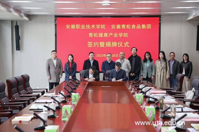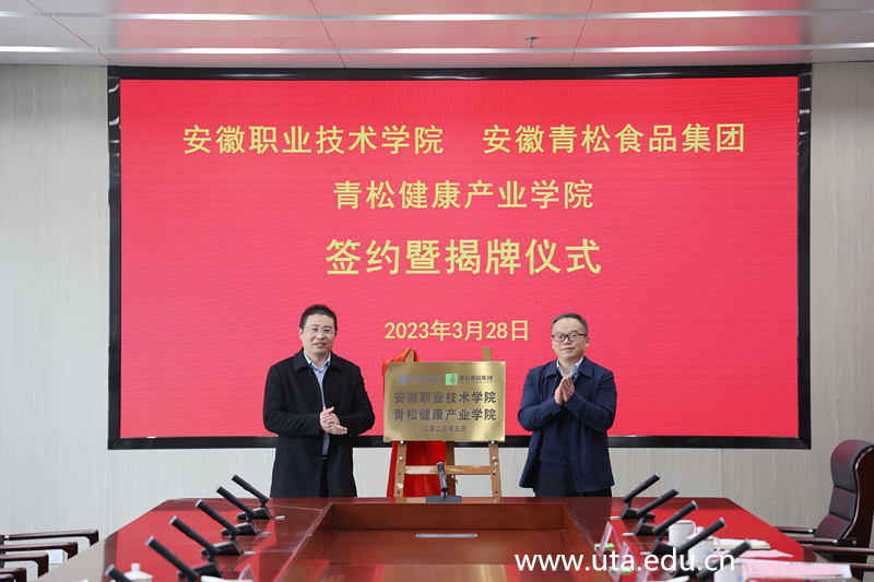杨林国和安徽青松食品集团副总经理麻宗明分别代表校企双方签署了青松健康产业学院协议。