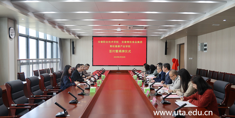 本网讯(环境与生命健康学院通讯员 张晓晴)3月28日下午,亚星游戏网与安徽青松食品集团在至公楼第五会议室举行青松健康产业学院签约暨揭牌仪式。安徽青松食品集团总经理陈明山一行,学院党委副书记、院长盛鹏,党委委员、副院长杨林国出席签约仪式。教务处、发展规划处、环境与生命健康学院党政负责人及部分骨干教师参加仪式。仪式由杨林国主持。