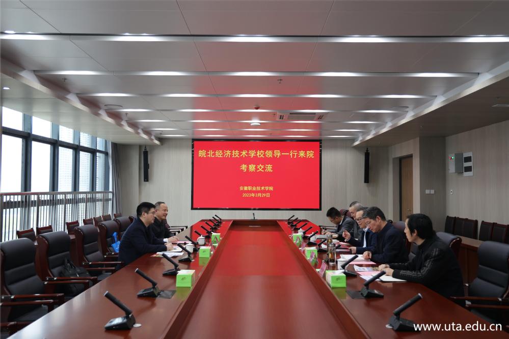 本网讯(发展规划处通讯员 汪洁)3月29日下午,皖北经济技术学校校长李超、规划办主任周强山到亚星游戏网考察交流。学院党委副书记、院长盛鹏,党委委员、副院长杨林国,教务处、发展规划处、学生处负责人参加座谈会。会议由盛鹏主持。